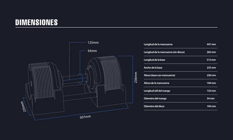 Los mangos G4 ofrecen un agarre sólido de 34 mm — probados tanto en sesiones de altas repeticiones como en series pesadas. 4 kg, 5.5 kg, 7 kg, 8.5 kg, 10 kg, 11.5 kg, 13 kg, 25 kg, 26.5 kg, 28 kg, 29.5 kg, 31 kg, 32.5 kg (Todos los pesos indicados son por mancuerna).